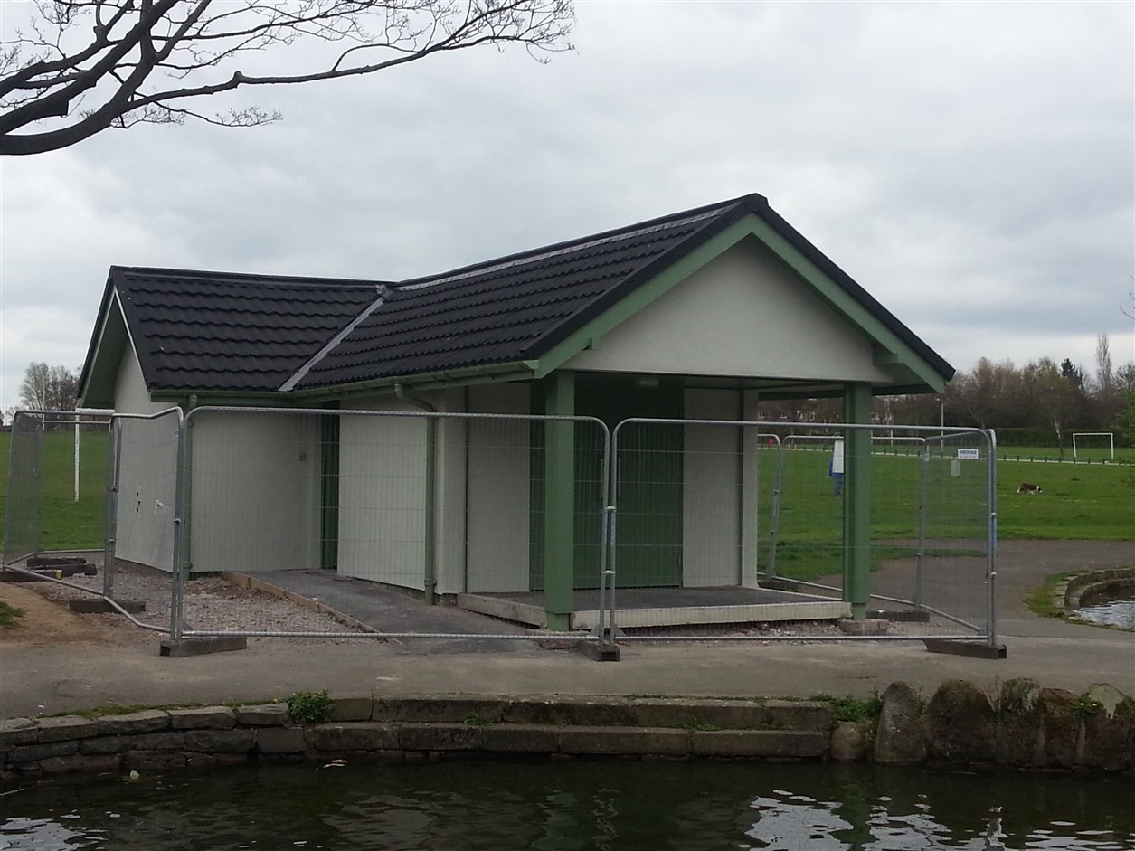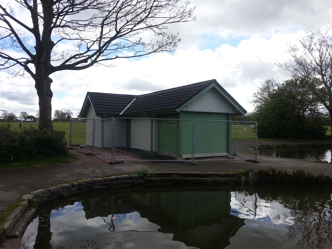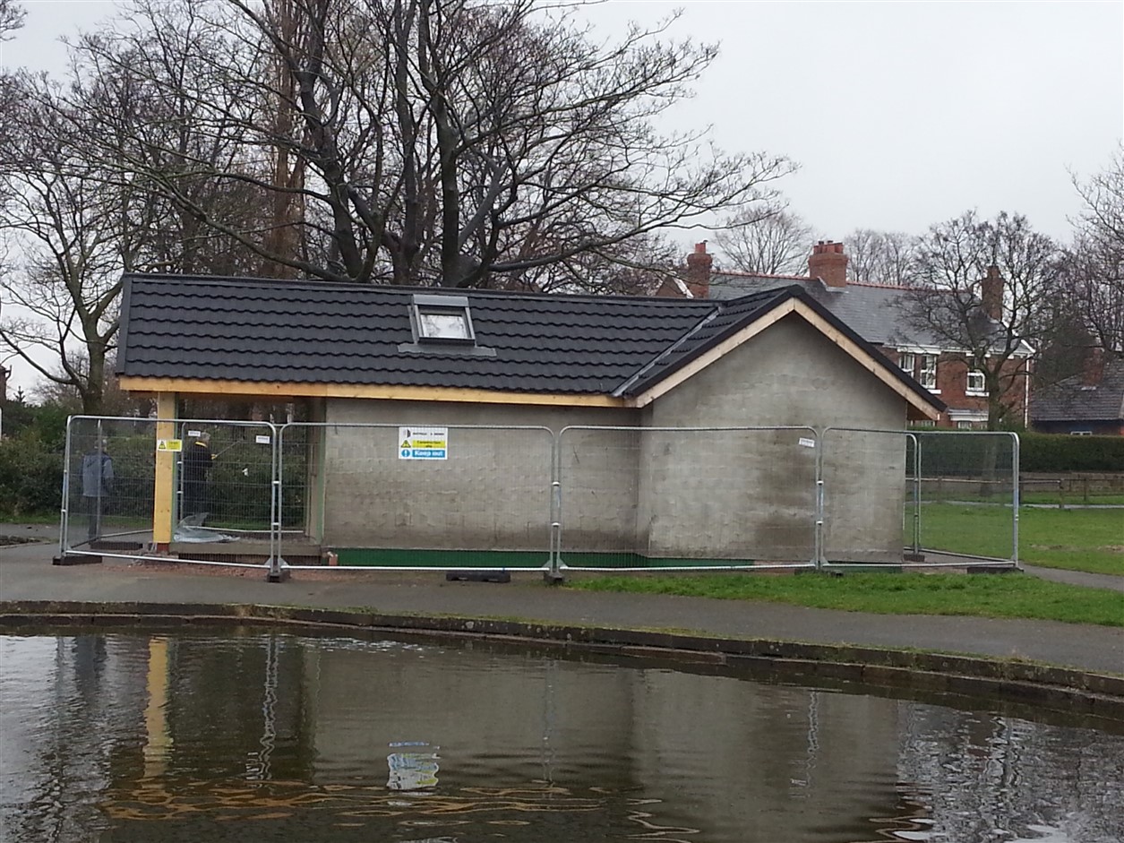 Regrettably for the time being due to unforeseen issues, all building work on the Pavilion and main park building have been suspended until new contractors can be found. The pictures below showing the temporary weather proofing.